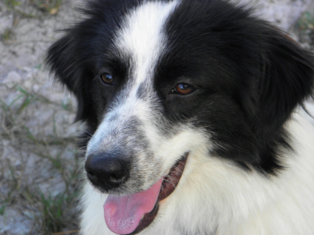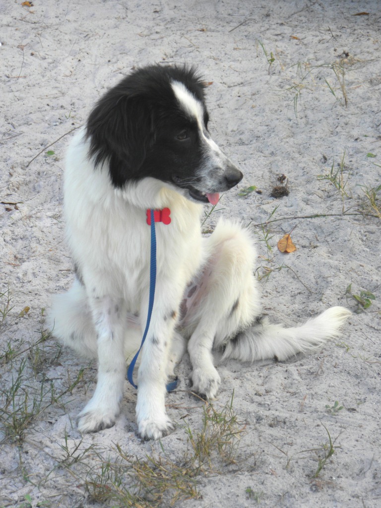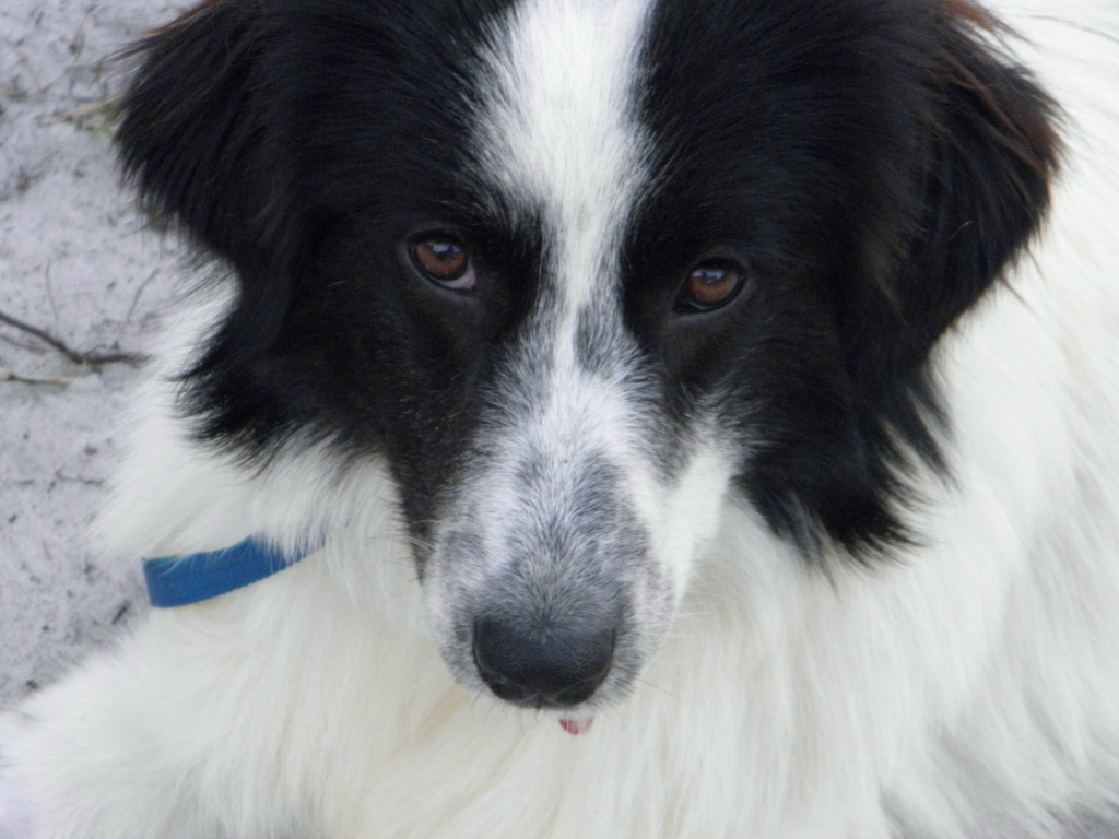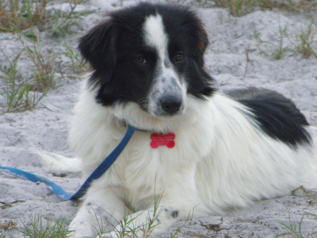 Brenda Lee is the smallest of the pack. Â She too is said to be Border Collie/Great Pyrenees. Â She is very shy, but Megan reports that she is quickly coming out of her shell. Â More photos of Brenda can be viewed on Facebook.