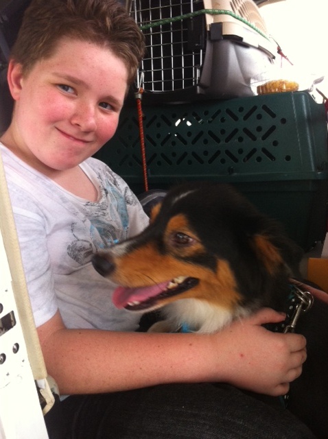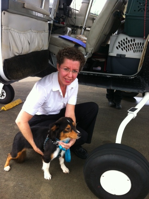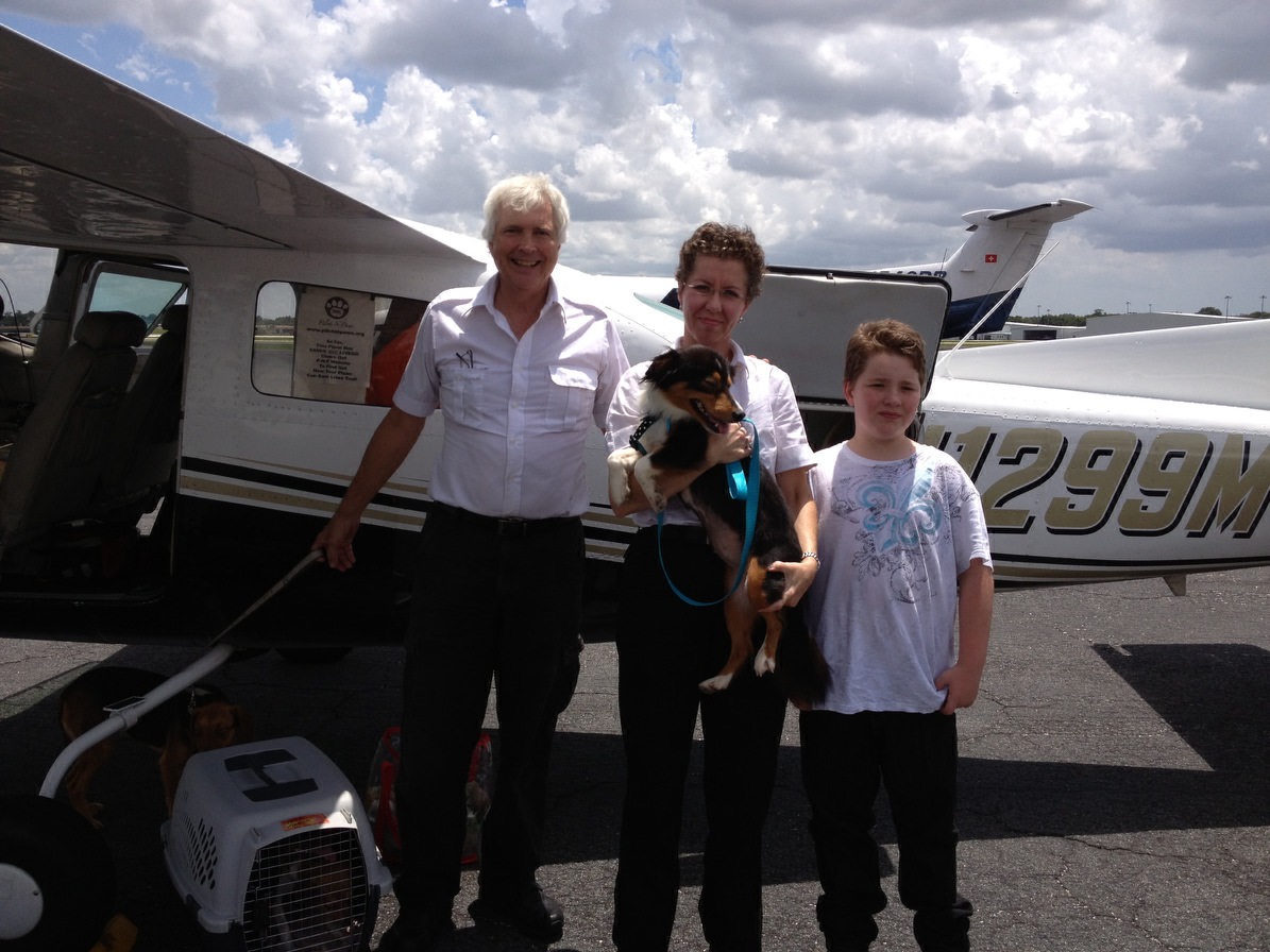 In grand style of course, Evie was flown down from Alabama to Orlando by pilot, Pilot Ed Golly! Â She rode shot gun the whole way! Debbie was there to meet the transport at the airport, and drove Evie straight to my house.