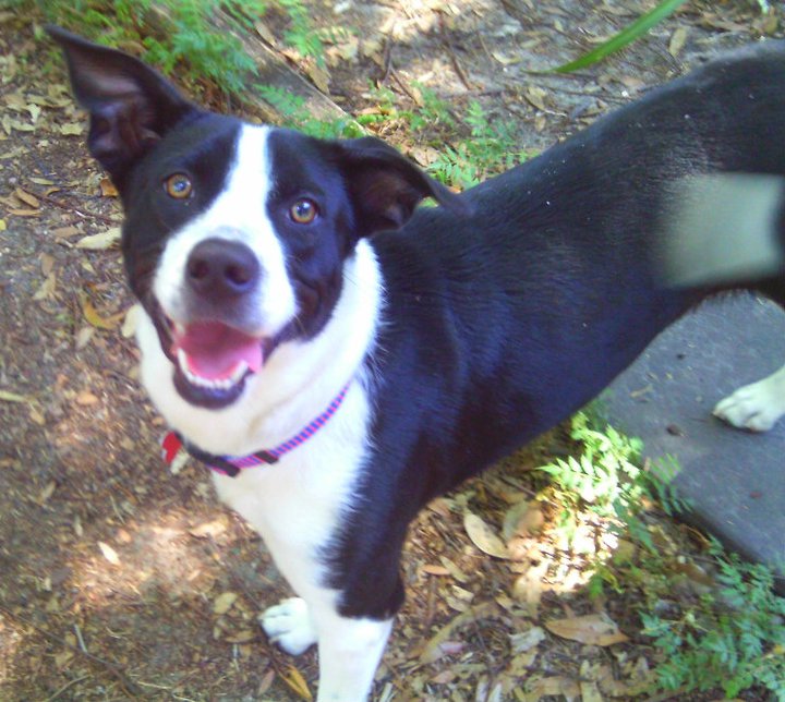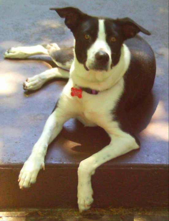 I cannot believe that River has not been adopted. It is so rare to find a dog that is so extremely tolerant of toddlers as she is. Plus she loves other dogs as well. In my heart I think the problem is the camera. River is one of those dogs that doesn’t photograph well. It’s always hard to get a good photo of a black (or white) dog ~ they just seem to suck in the light. Plus, like some of the Border Collie puppies I have fostered, River does that funny thing with her ears when she sees a camera. Honestly, I think that the real problem is that people who don’t know smooth coat Border Collies think she is pit bull! It makes me nuts. I’ve been involved in rescue for so many years that I’ve seen this over and over again. Someone sees a black and white, or brindle, dog and they label it a pit. Ugh. She isn’t. She is a smoothie. And an amazing one at that. Rive just photographs poorly. But what she does do well is live and love. Read this wonderful update from her foster and you’ll understand what I mean: