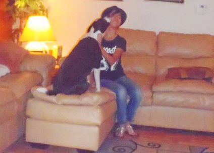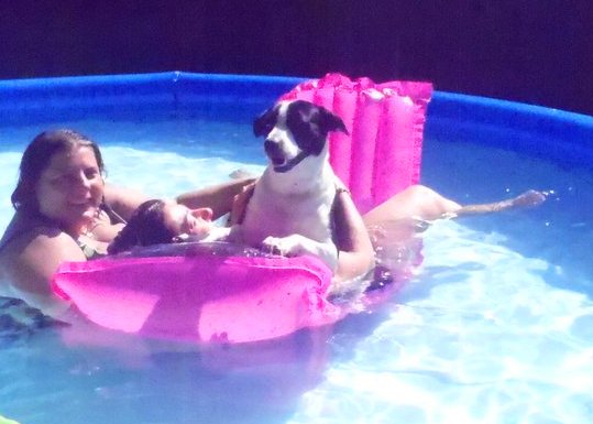 “I wanted to let you guys know that she is doing great. She gets along well with all 5 of my other dogs and of course my 15 month old nephew, Cole and our friends 12 year old daughter, Fabi. She loves to run and play with my Chihuahua/Beagle mix, Odie and her new favorite activity is swimming in the pool with us. She loves water. She will actually get on the pool float and float around in the pool. She is an awesome dog. ~ Dee ”