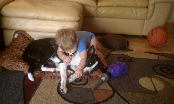 We knew River was okay with kids, but apparently her feelings go beyond mere tolerance — she LOVES children! Here’s what foster Dee Holcomb’s daughter, Candice, says about our girl: “If you’re looking for a family dog for your kids or a dog for your little ones to grow up with, this River is that dog. She doesn’t just put up with 13-month-old Cole, she turns to putty with him. She plays ball with him, loves to chase him in his swing, and takes walks along side us. She is the perfect family dog who loves to be involved in everything the family does.” Who ever said herding breeds aren’t good with small children? Certainly not us!