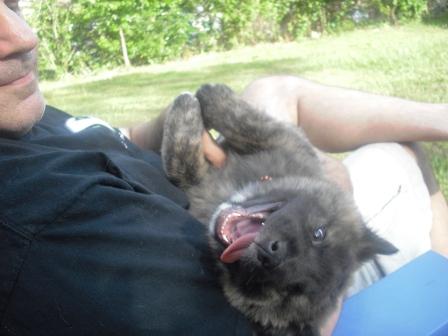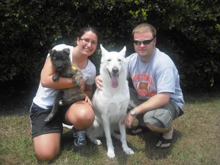 Twizzler has found her forever home! Chris and Tahiry have been wanting to find a playmate for two-year-old Denali, but nothing has worked out. They thought an adult dog would be great, but Denali is a naturally submissive girl, and the adult dogs have overly dominated her. Would a puppy work? You bet! Twizzler really liked Denali, and Denali thought she was pretty nice too! As a puppy, Twizzler will naturally look to Denali for leadership. I can’t wait until I see photos of them together when Twizzler is grown. I think they’ll be a stunning contrast!